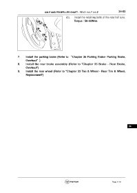 7. Install the parking brake (Refer to “Chapter 36 Parking Brake- Parking Brake,