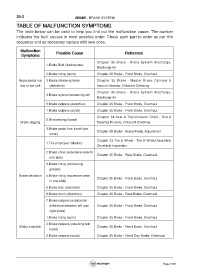 TABLE OF MALFUNCTION SYMPTOMS
