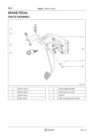 35-6 BRAKE - BRAKE PEDAL BRAKE PEDAL PARTS DRAWING 1 Return spring 5 Brake pedal assembly 2 Retaining bolt 6 Brake push bar u-joint 3 Retaining nut 7 Split pin 4 Brake switch 8 Vacuum booster push rod pin Page 1154