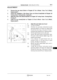 3. Adjust the brake shoe clearance(Refer to"Chapter 36 Parking Brake- Parking Brake,