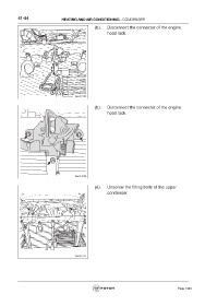 41-54 HEATING AND AIR CONDITIONING - CONDENSER (b). Disconnect the connector of the engine hood lock. fuwx41033 (b). Disconnect the connector of the engine hood lock. (d). Unscrew the fitting bolts of the upper condenser. fuwx41035 Page 1334