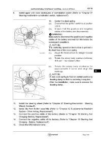 11. Install the steering wheel (Refer to "Chapter 37 Steering Mechanism - Steering