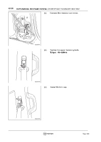 42-26 SUPPLEMENTAL RESTRAINT SYSTEM - DRIVER/FRONT PASSENGER SEAT BELT (c). Connect the retractor connector. (d). Tighten the upper fastening bolts. Torque : 45~55N•m (e). Install the trim cap. Page 1390