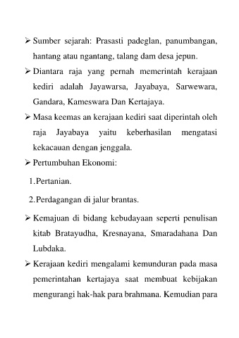 ➢ Kerajaan kediri mengalami kemunduran pada masa