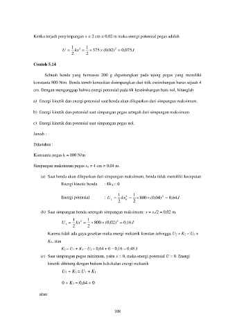 Energi potensial : U = kx = 800 , 0 ( 04 ) = , 0 64 J