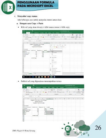 Ada beberapa cara untuk menyalin rumus antara lain: