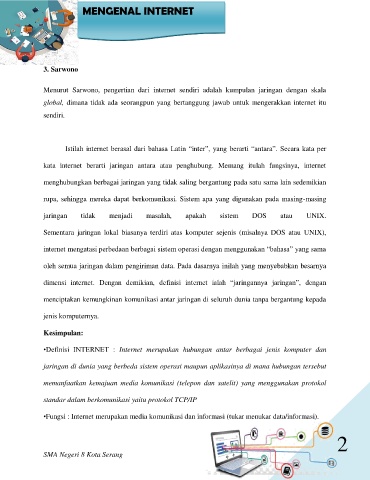 Menurut Sarwono, pengertian dari internet sendiri adalah kumpulan jaringan dengan skala