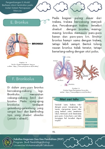 bercabang-cabang lagi. Struktur Organ Pernapasan: bronciolus