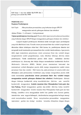 persamaan linier dua variabel. Oleh karena itu, pada pertemuan ini peserta didik akan