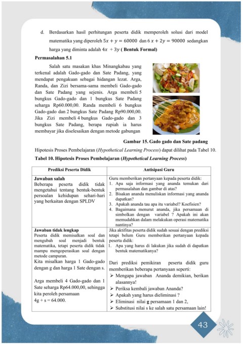 Kita misalkan harga 1 Gado-gado Dari prediksi pemikiran peserta didik guru