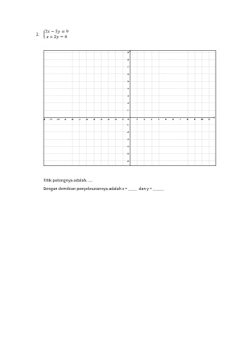 2 − 5 = 9 2. { + 2 = 0 Titik potongnya adalah….. Dengan demikian penyelesaiannya adalah x = ____ dan y = _____