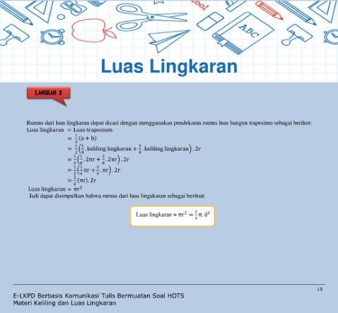Rumus dari luas lingkaran dapat dicari dengan menggunakan pendekatan rumus luas bangun trapesium sebagai berikut: