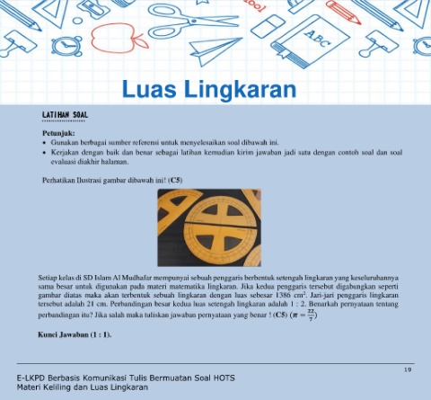gambar diatas maka akan terbentuk sebuah lingkaran dengan luas sebesar 1386 cm . Jari-jari penggaris lingkaran