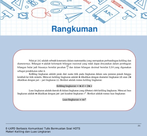dikalikan dengan jari – jari lingkaran (r). Berikut adalah rumus keliling lingkaran: