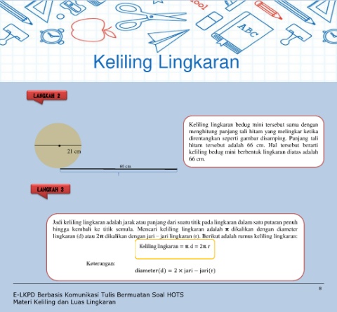 hingga kembali ke titik semula. Mencari keliling lingkaran adalah dikalikan dengan diameter