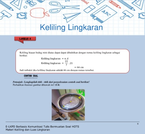 Keliling hiasan bedug mini diatas dapat dapat dibuktikan dengan rumus keliling lingkaran sebagai