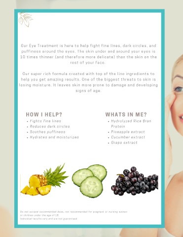 O u r E y e T r e a t m e n t i s h e r e t o h e l p f i g h t f i n e l i n e s , d a r k c i r c l e s , a n d
