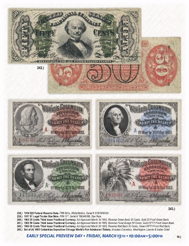 242.) 1863 50 Cents Third Issue Fractional Currency. Act Approved March 3d 1863, Reverse Red Back 50 Cents, Green FIFTY Front Red Back.