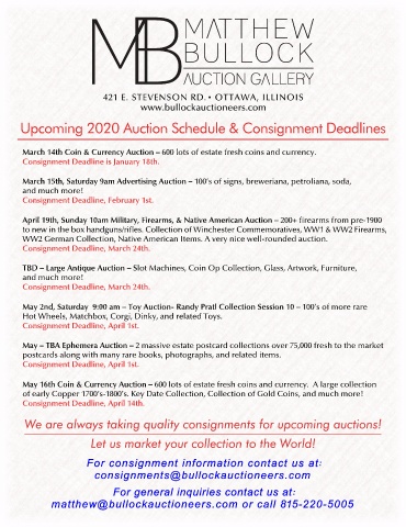 Upcoming 2020 Auction Schedule & Consignment Deadlines