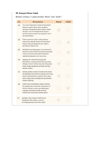 III. Kategori Benar-Salah Berikan centang (✓) pada jawaban "Benar" atau "Salah"!