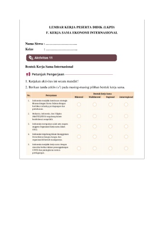 2. Berikan tanda ceklis (✓) pada masing-masing pilihan bentuk kerja sama.