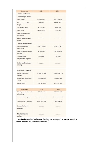 Berikan kesimpulan berdasarkan data laporan keuangan Perusahaan Daerah Air Minum (PDAM) Kota Sukabumi tersebut!