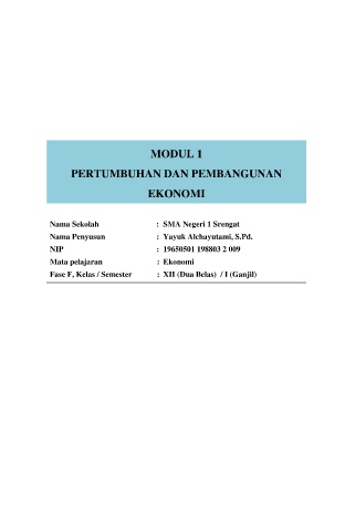 MODUL 1 PERTUMBUHAN DAN PEMBANGUNAN EKONOMI Nama Sekolah : SMA Negeri 1 Srengat Nama Penyusun : Yayuk Alchayutami, S.Pd. NIP : 19650501 198803 2 009 Mata pelajaran : Ekonomi Fase F, Kelas / Semester : XII (Dua Belas) / I (Ganjil)
