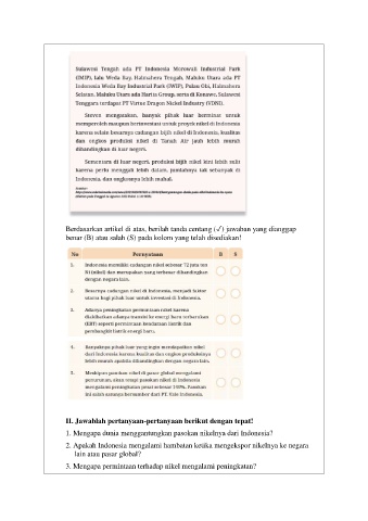 Berdasarkan artikel di atas, berilah tanda centang (✓) jawaban yang dianggap