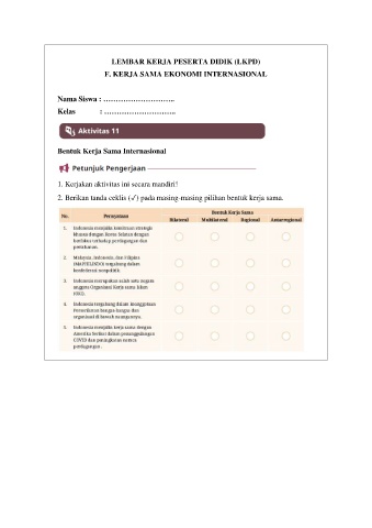 2. Berikan tanda ceklis (✓) pada masing-masing pilihan bentuk kerja sama.