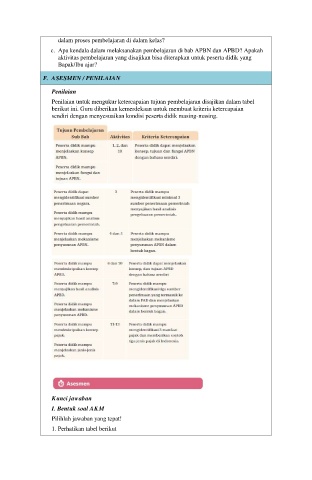Penilaian untuk mengukur ketercapaian tujuan pembelajaran disajikan dalam tabel