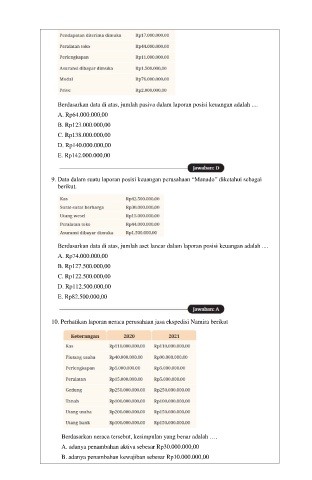 9. Data dalam suatu laporan posisi keuangan perusahaan “Manado” diketahui sebagai