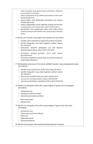 17. Berdasarkan pernyataan di bawah ini, pilihlah transaksi yang memengaruhi ekuitas