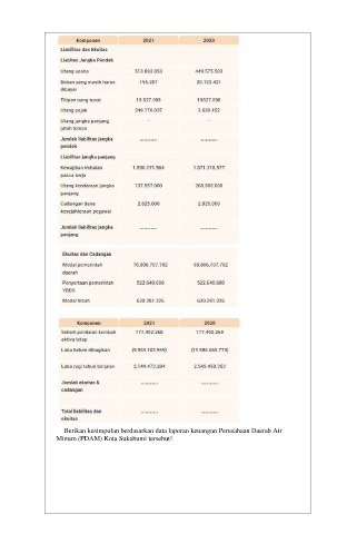 Berikan kesimpulan berdasarkan data laporan keuangan Perusahaan Daerah Air Minum (PDAM) Kota Sukabumi tersebut!