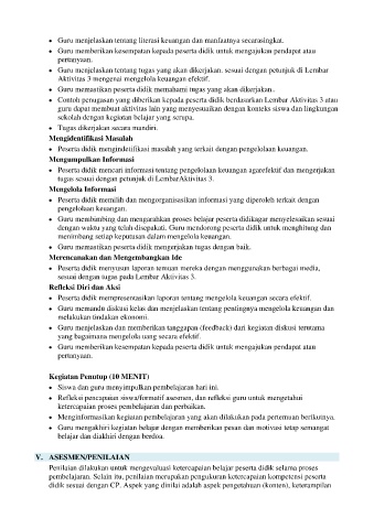 • Guru memandu diskusi kelas dan menjelaskan tentang pentingnya mengelola keuangan dan