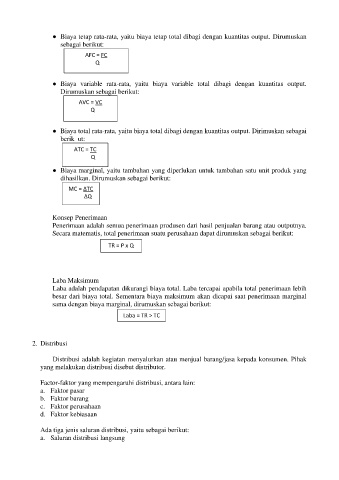 sama dengan biaya marginal, dirumuskan sebagai berikut: