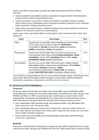 (inkuiri, penelitian, memecahkan masalah) dan sikap berdasarkan enam Profil Pelajar