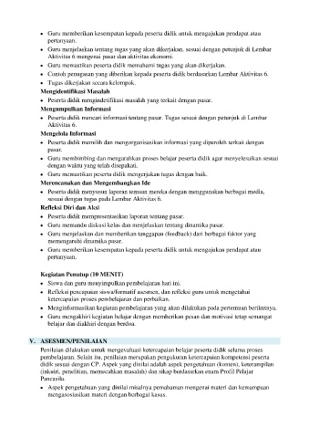 • Guru membimbing dan mengarahkan proses belajar peserta didik agar menyelesaikan sesuai