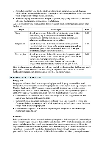 keterampilan inkuiri selama proses pembelajaran. Mulai belum