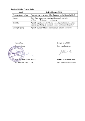 Lembar Refleksi Peserta Didik