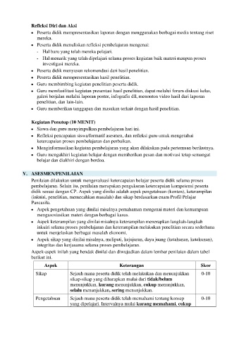 • Refleksi pencapaian siswa/formatif asesmen, dan refleksi guru untuk mengetahui