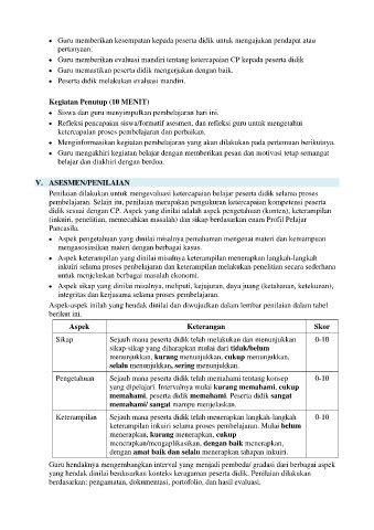 • Guru memberikan evaluasi mandiri tentang ketercapaian CP kepada peserta didik