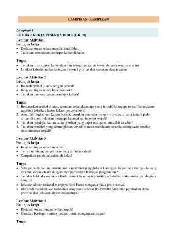 • Tuliskan lima contoh kebutuhan dan keinginan kalian sesuai dengan kondisi saat ini.