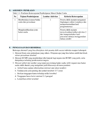 Tabel 1.4. Penilaian Ketercapaian Pembelajaran Materi Badan Usaha