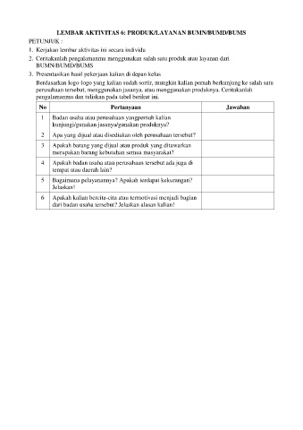 LEMBAR AKTIVITAS 6: PRODUK/LAYANAN BUMN/BUMD/BUMS