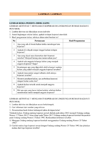 LEMBAR AKTIVITAS 7: MENGAMATI KOPERASI DI LINGKUNGAN RUMAH BAGIAN I