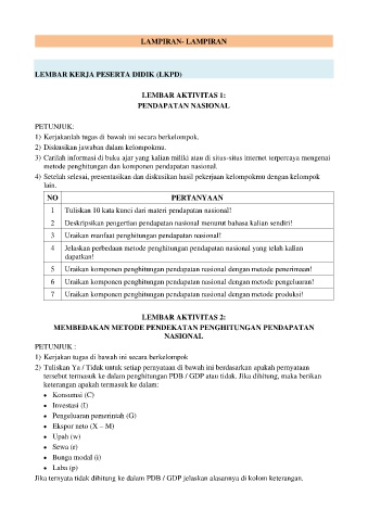 1 Tuliskan 10 kata kunci dari materi pendapatan nasional!