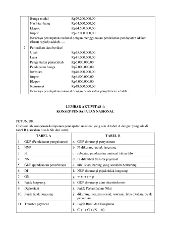 Cocokanlah komponen-komponen pendapatan nasional yang ada di tabel A dengan yang ada di