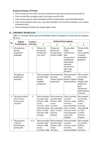 Tabel 2.4. Penilaian Ketercapaian Pembelajaran Materi Pendapatan Nasional dan Kesenjangan
