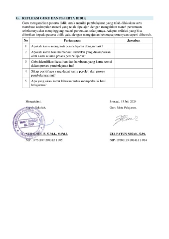 G. REFLEKSI GURU DAN PESERTA DIDIK