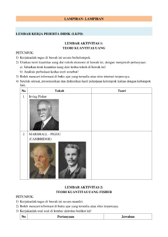 2) Uraikan teori kuantitas uang dari tokoh ekonomi di bawah ini, dengan menjawab pertanyaan: